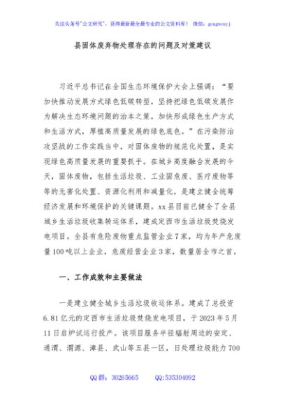 县农业面源污染防治工作开展情况、存在问题及对策建议