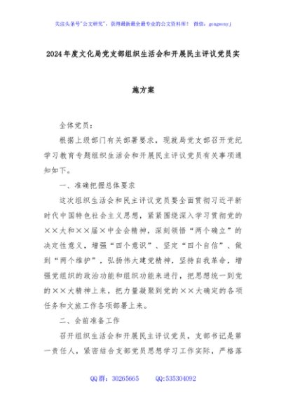 / 2024年度文化局党支部组织生活会和开展民主评议党员实施方案