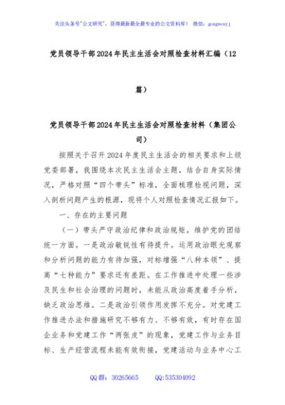 / (12篇)党员领导干部2024年民主生活会对照检查材料汇编