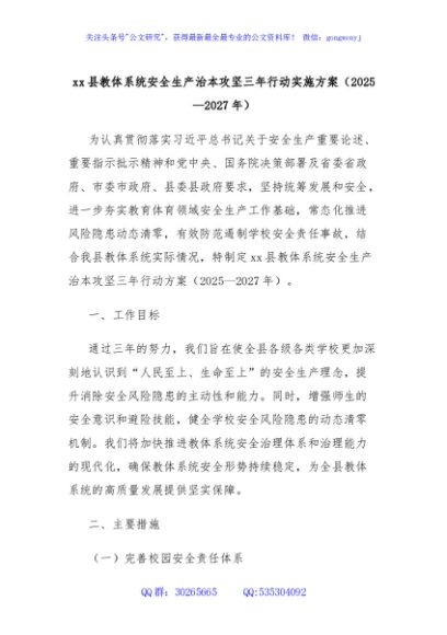 / xx县教体系统安全生产治本攻坚三年行动实施方案(2025—2027年)