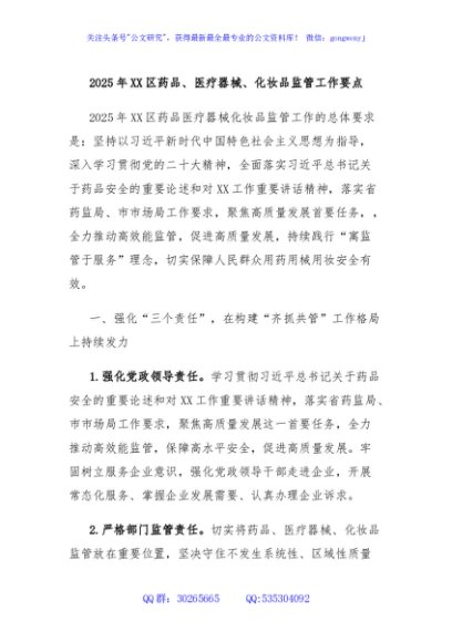 / 2025年XX区药品、医疗器械、化妆品监管工作要点