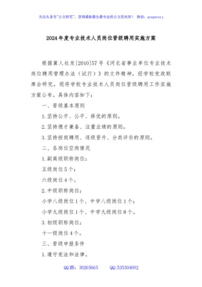 / 2024年度专业技术人员岗位晋级聘用实施方案