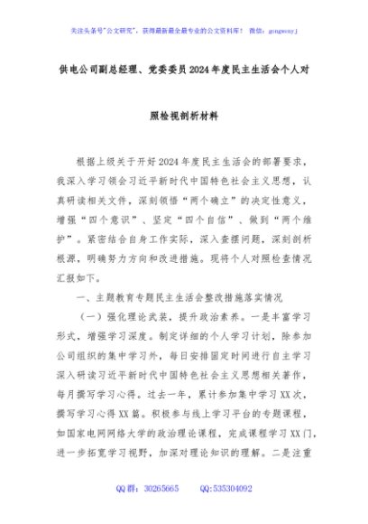 / 供电公司副总经理、党委委员2024年度民主生活会个人对照检视剖析材料