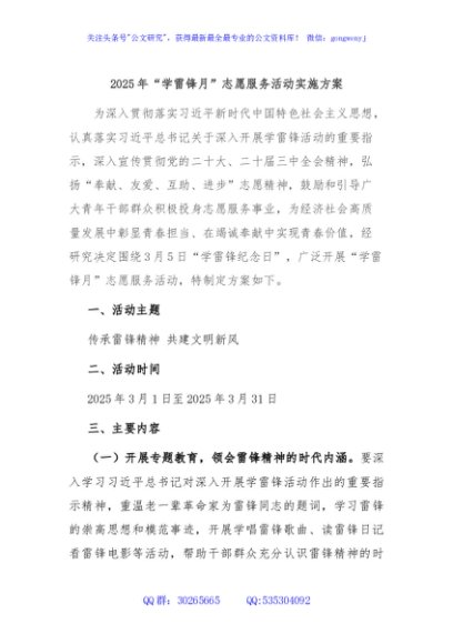 / 2025年“学雷锋月”志愿服务活动实施方案