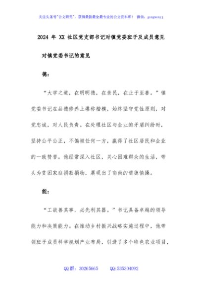 / 2024 年 XX 社区党支部书记对镇党委班子及成员意见