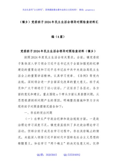 / (4篇)党委班子2024年民主生活会领导对照检查材料汇编(镇乡)