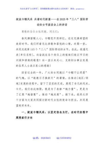 / 绽放巾帼风采 共谱时代新篇——在2025年“三八”国际劳动妇女节座谈会上的讲话