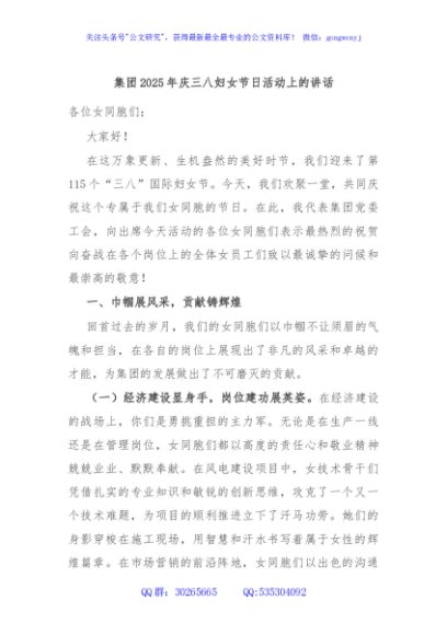 / 集团2025年庆三八妇女节日活动上的讲话