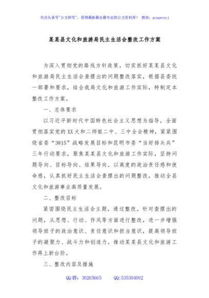 / 某某县文化和旅游局民主生活会整改工作方案