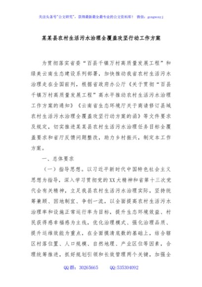 / 某某县农村生活污水治理全覆盖攻坚行动工作方案