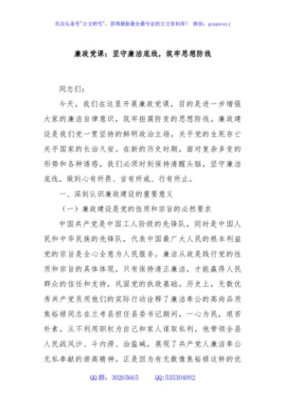廉政党课:坚守廉洁底线,筑牢思想防线