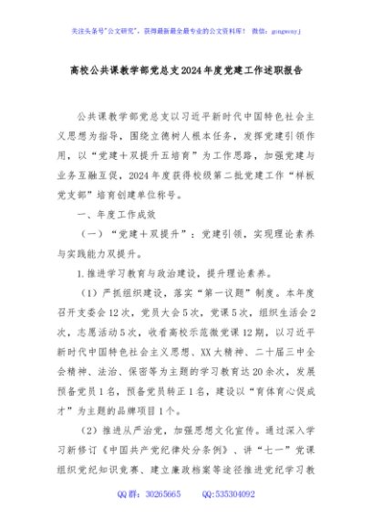 / 高校公共课教学部党总支2024年度党建工作述职报告