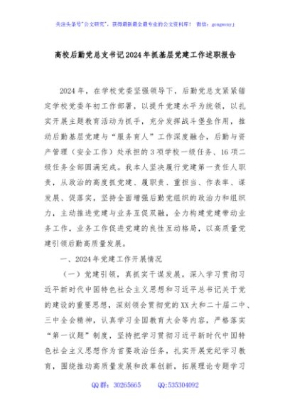 / 高校后勤党总支书记2024年抓基层党建工作述职报告