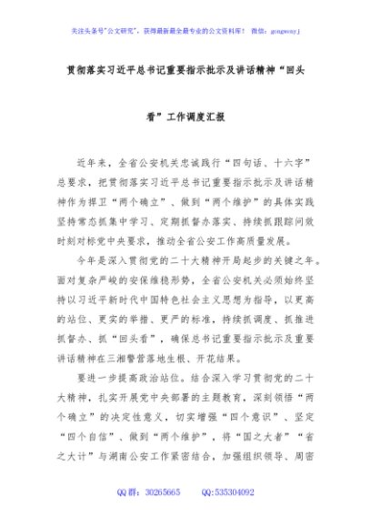 贯彻落实习近平总书记重要指示批示及讲话精神“回头看”工作调度汇报