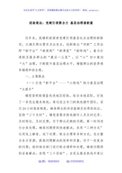 / 经验做法:党建引领聚合力 基层治理谱新篇