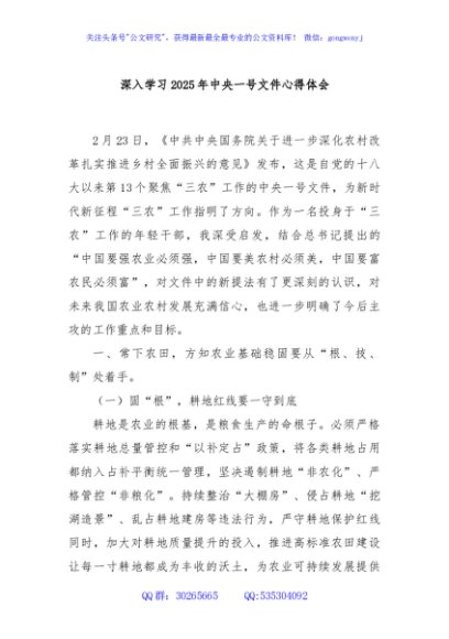 / 深入学习2025年中央一号文件心得体会