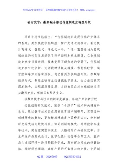 研讨发言:数实融合推动传统制造业转型升级