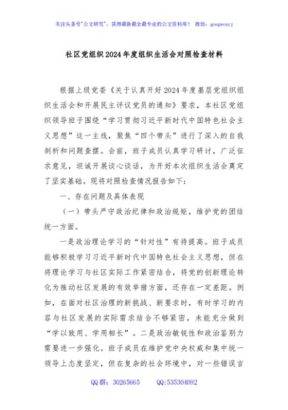 / 社区党组织2024年度组织生活会对照检查材料