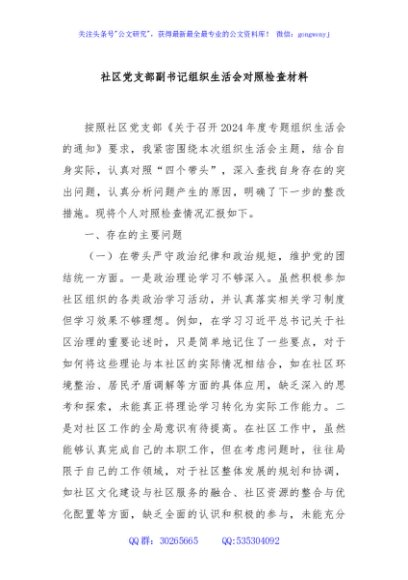 / 社区党支部副书记组织生活会对照检查材料