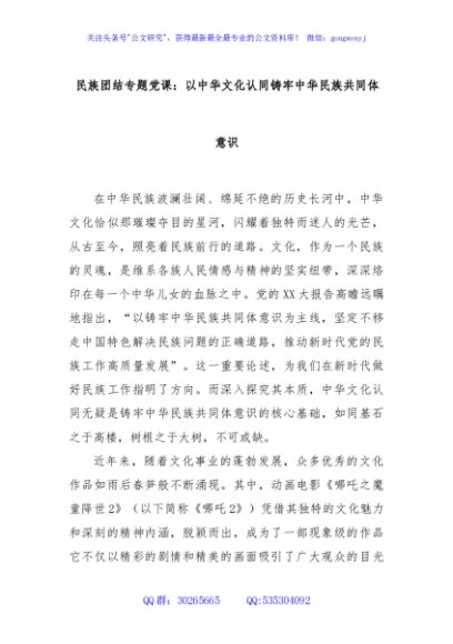 / 民族团结专题党课:以中华文化认同铸牢中华民族共同体意识
