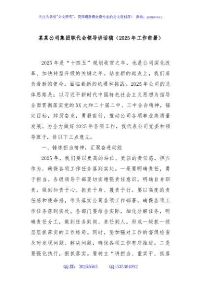 / 某某公司集团职代会领导讲话稿(2025年工作部署)