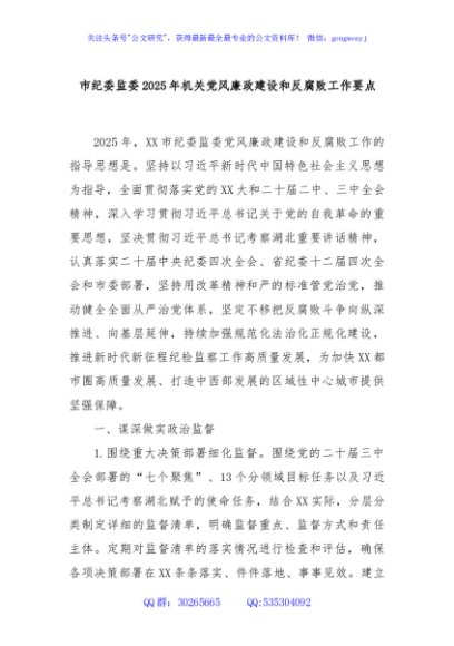 / 市纪委监委2025年机关党风廉政建设和反腐败工作要点