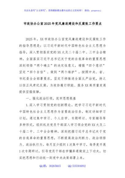 / 市政协办公室2025年党风廉政建设和反腐败工作要点