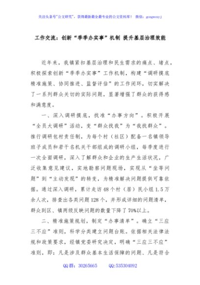 / 工作交流:创新“季季办实事”机制 提升基层治理效能