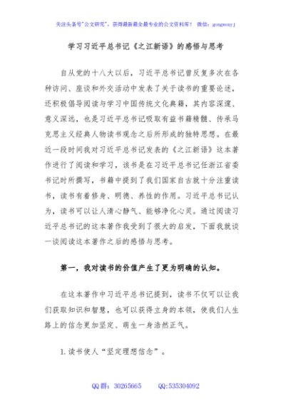 / 学习习近平总书记《之江新语》的感悟与思考