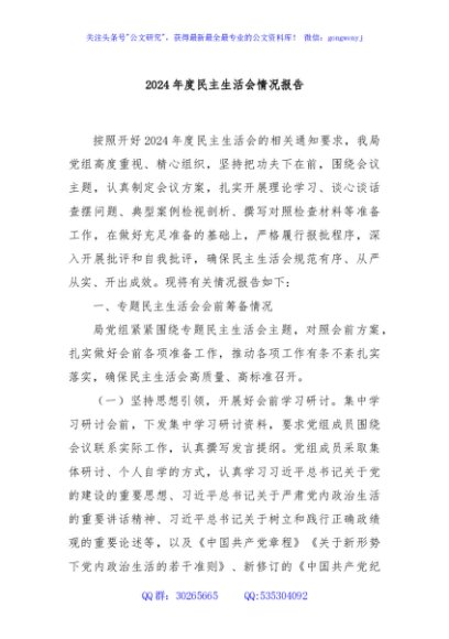 / 2024年度民主生活会情况报告
