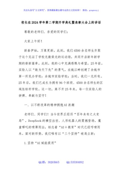 / 校长在2024学年第二学期开学典礼暨表彰大会上的讲话