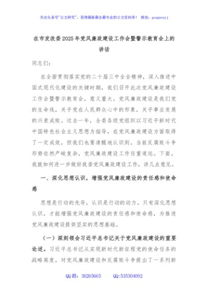 / 在市发改委2025年党风廉政建设工作会暨警示教育会上的讲话