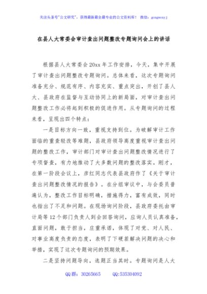 / 在县人大常委会审计查出问题整改专题询问会上的讲话