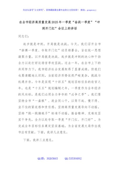 / 在全市经济高质量发展2025年一季度“奋战一季度”“冲刺开门红”会议上的讲话