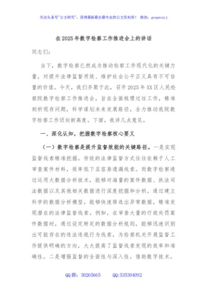 / 在2025年数字检察工作推进会上的讲话
