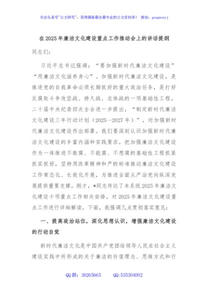 / 在2025年廉洁文化建设重点工作推动会上的讲话提纲