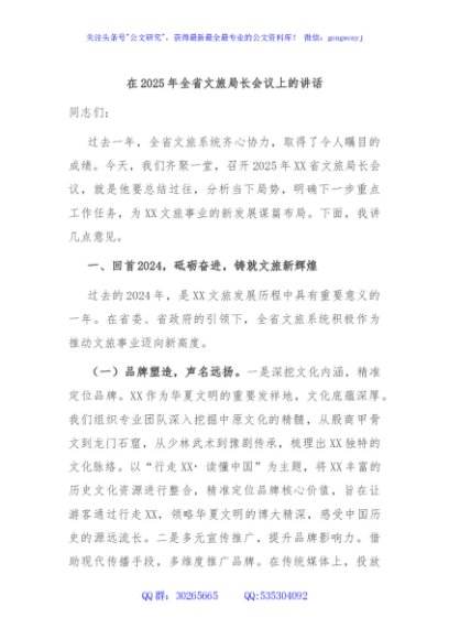 / 在2025年全省文旅局长会议上的讲话