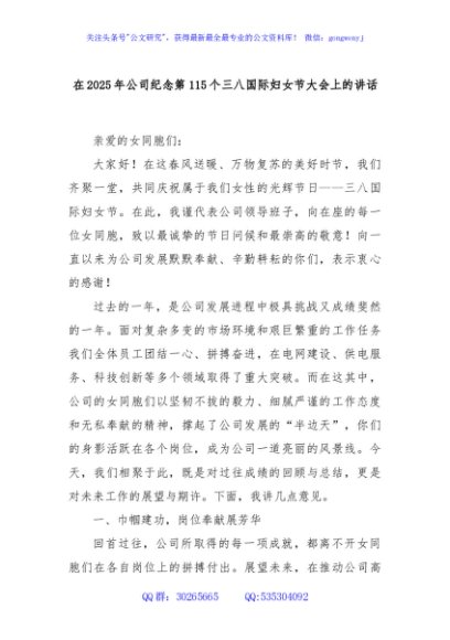 / 在2025年公司纪念第115个三八国际妇女节大会上的讲话