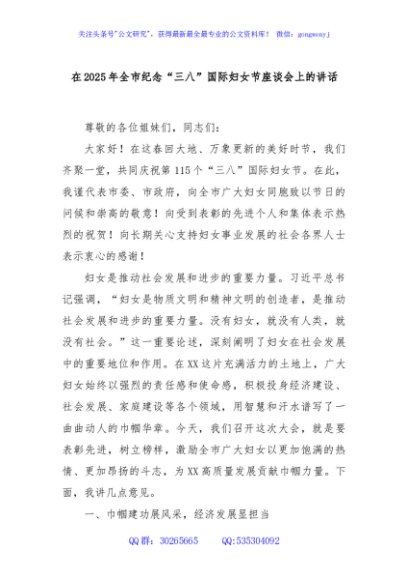/ 在2025年全市纪念“三八”国际妇女节座谈会上的讲话