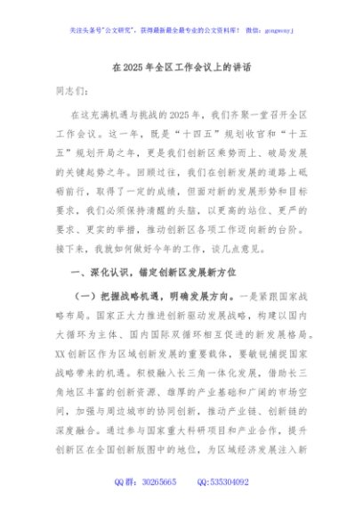 / 在2025年全区工作会议上的讲话