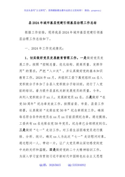 / 县2024年城市基层党建引领基层治理工作总结