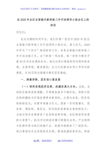 / 在2025年全区全面振兴新突破三年行动领导小组会议上的讲话