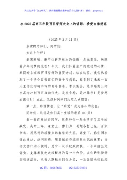 / 在2025届高三年级百日誓师大会上的讲话:珍爱自律规范
