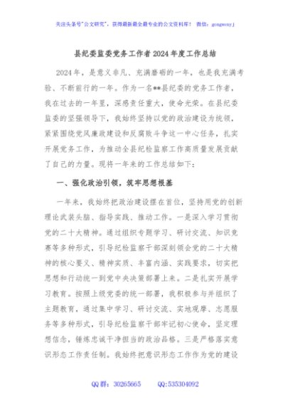 / 县纪委监委党务工作者2024年度工作总结