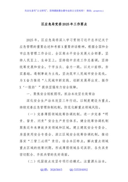 / 区应急局党委2025年工作要点