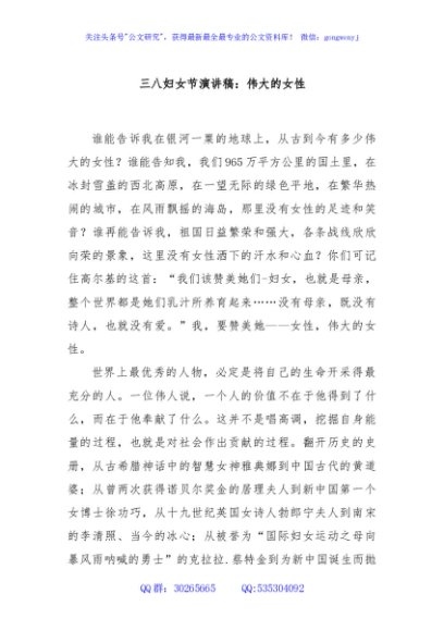 / 三八妇女节演讲稿:伟大的女性