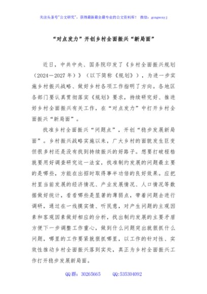 / “对点发力”开创乡村全面振兴“新局面”