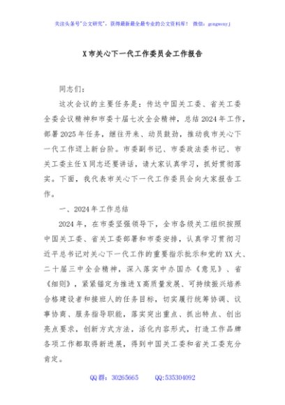 / X市关心下一代工作委员会工作报告
