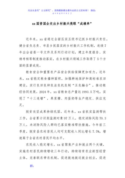 / xx国资国企交出乡村振兴亮眼“成绩单”