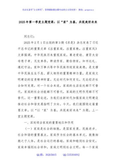 2025年第一季度主题党课:以“家”为基,共筑美好未来